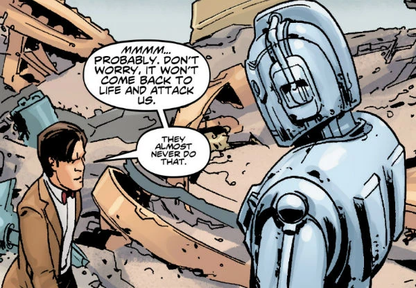 The Eleventh Doctor discovers the husk of a Cyberman on Veestrax. (COMIC: Outrun)