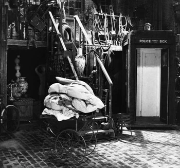 Junkyard set and police box for An Unearthly Child.