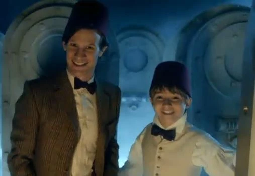 The Eleventh Doctor and Kazran sport fezzes. (TV: A Christmas Carol)